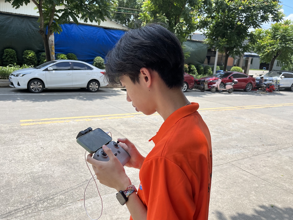 除了帮助村民农田作业,无人机还承担了水南村的安全巡逻任务。在实际应用中,无人机通过人工操作和自主飞行等方式,在飞行技术下搭载高清摄像头、雷达和红外线等设备实现巡逻和监控。迎南而上实践团的陈荣桓操纵着无人机,跟水南村的治保主任一起进行村内日常巡查、森林防火巡查、河道安全巡逻等日常巡逻任务,累计完成山林及农田巡逻4600亩,流溪河、村内灌溉河道、鱼塘等防溺水安全巡逻工作。