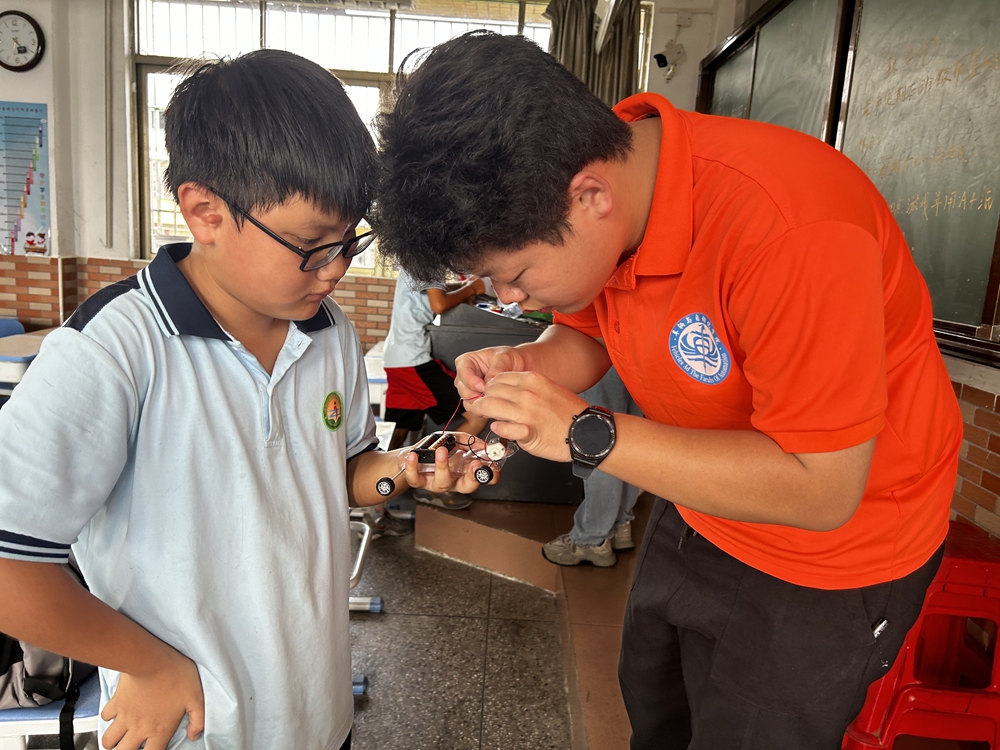 实践期间,迎南而上实践团的同学们开设了科技小课堂。该课堂主要分为西游驴皮、科学大爆炸、放飞梦想和汽车总动员四方面内容,面向太平镇各小学招募学生,开课地点设置在办学历史悠久的水南小学。他们秉承科技创新传帮带的理念,把掌握的专业知识和科学技术带到水南小学,将高校科普-无人驾驶物流小车进校园的活动落到实处,让同学们感受科技的力量,助力智慧乡村的建设,推进乡村振兴发展的脚步。