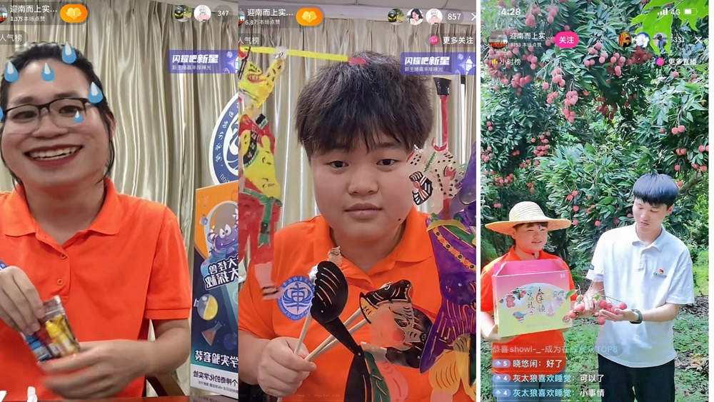 除了给小学生们科普知识,迎南而上实践团的学生听说村里的农产品销量不稳定,便采用新媒体直播的方式带动农产品的销售,争当农产品优秀宣传员,利用互联网拓宽荔枝、黄皮和龙眼等农产品销售渠道。迎南而上实践团品尝了香甜可口的荔枝后还不忘邀请直播间的粉丝到当地旅游,体验采摘荔枝、黄皮、龙眼的乐趣。
