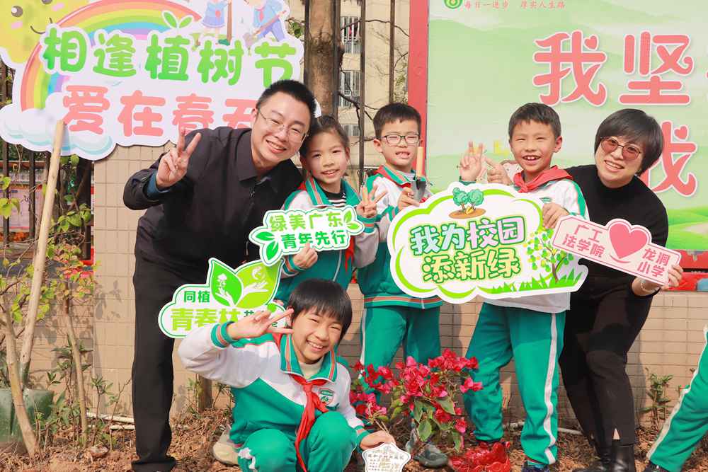 3月8日下午,广东工业大学的师生们前往龙洞小学开展“相逢植树节 爱在春天里”植树护绿志愿服务活动,共赴一场绿美校园之约。