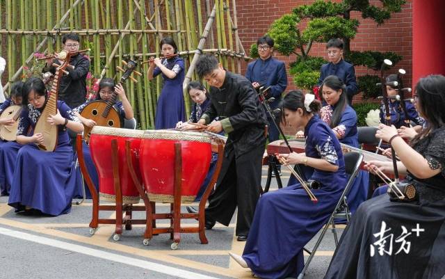 学生们还带来了潮州大锣鼓、民族乐器演奏等精彩节目。其中,来自音乐舞蹈学院的学生们带来了一曲《画眉跳架》,由潮州大锣鼓配上各类乐器,吸引了众多师生驻足。