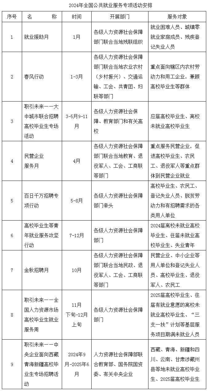 人力资源社会保障部关于开展2024年全国公共就业服务专项活动的通知