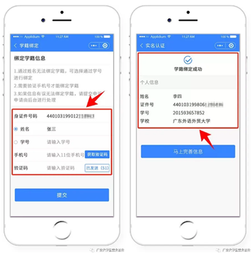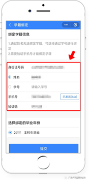2.“绑定学籍信息”并“提交”。