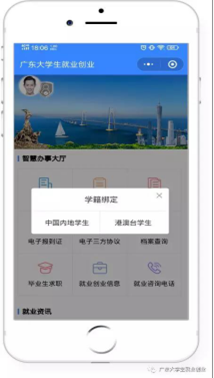 1.进入“广东大学生就业创业”官方小程序,在色情网左上角找到“用户登录”,点击后出现一个弹窗,出现两个选项:“中国内地学生”“港澳台学生”,选择“中国内地学生”选项。