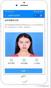 5.点击“我的简历”中的头像,上传符合要求的免冠照片,系统即可快速生成蓝色背景的证件照片。照片可适用于简历、派遣、电子就业协议等系统中的多个服务场景(证件照片经过公安部后台校验,符合国家证件照标准)。