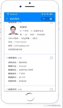 2.点击“毕业生求职”模块,如已绑定学籍的同学即可完善简历并投递。